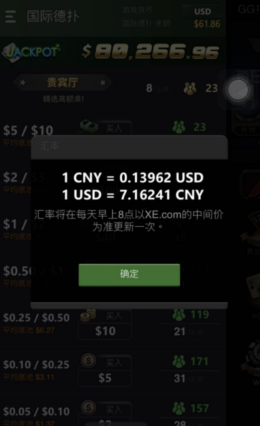 进入游戏后,点选游戏货币,即可查看到每日人民币与美元的汇率比例。