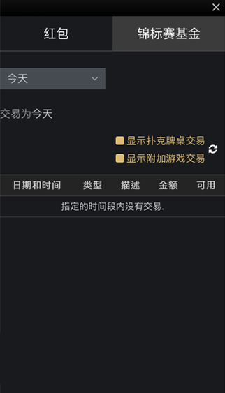 交易明细:主要显示资金的转移,添加,提取记录,也可以使用此功能查询游戏相关数据。
