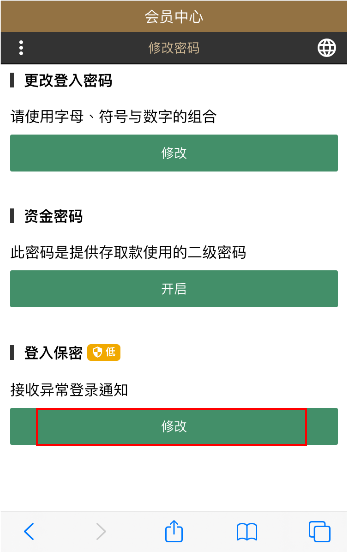 您可以在安全中心进行登录密码修改,资金密码设定与修改,或是更换异常登录通知方式