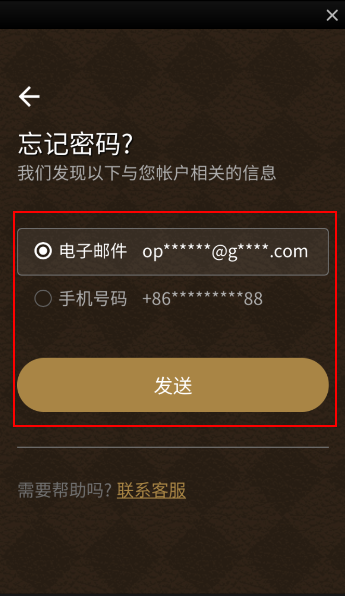 您可以透过忘记密码功能,进行密码重设,请注意,此功能必须完成电话或邮箱认证,您可以选择使用电话或邮箱,来接收密码重设时需要的验证码。